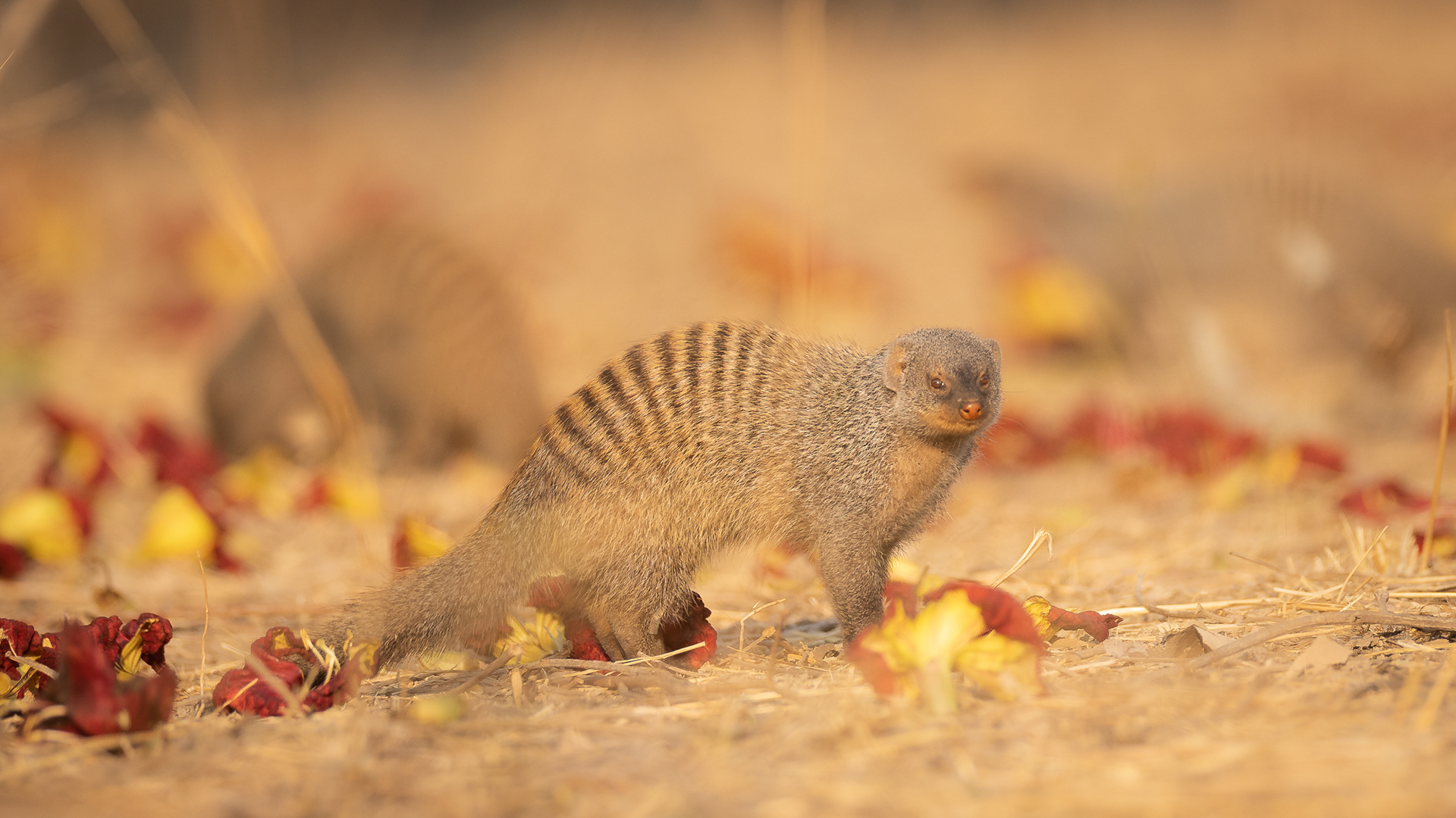 Under the shade of the sausage tree a mob of banded mongeese were harvesting the nectar from the fallen flowers.