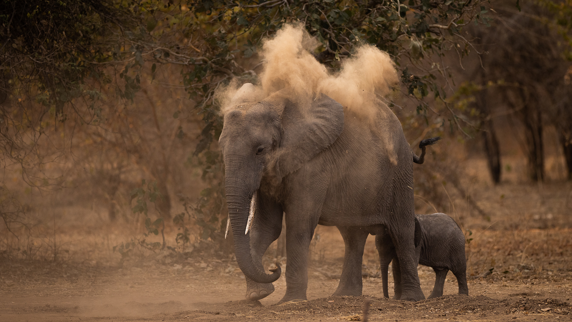 Dusting has a dual purpose. Firstly it is used as a sun screen to protect the virtually hairless skin from burning and secondly to try and rid any irritating insects - mostly to no avail.