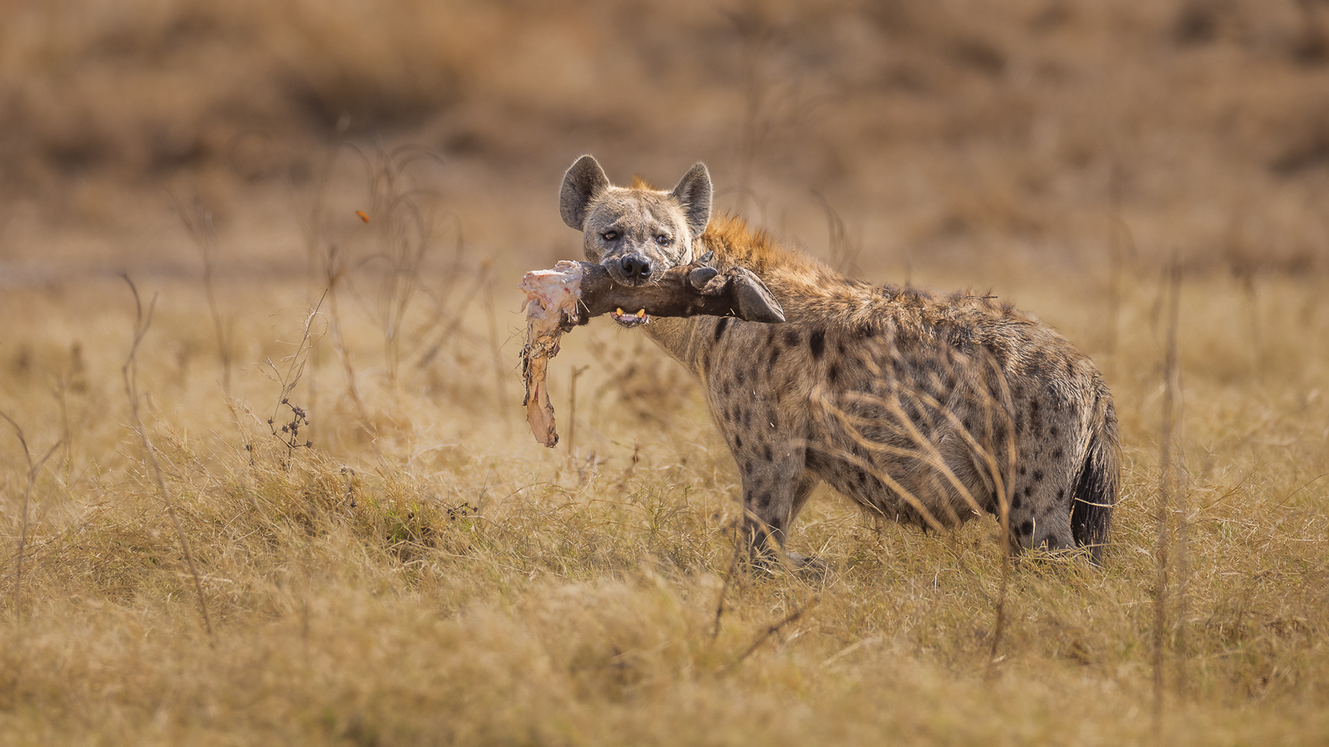 This lone hyaena has a buffalo leg most probably pilfered from an earlier kill.