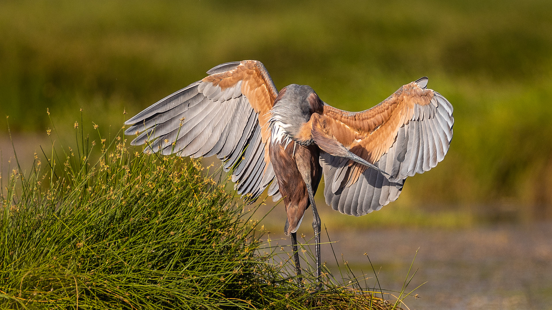 This Goliath Heron was standing stock still waiting for a catfish to grab for its breakfast. Hoping to catch the shot I waited for 20 minutes or so. Eventually it started to become bored, as did I, and decided to preen instead.